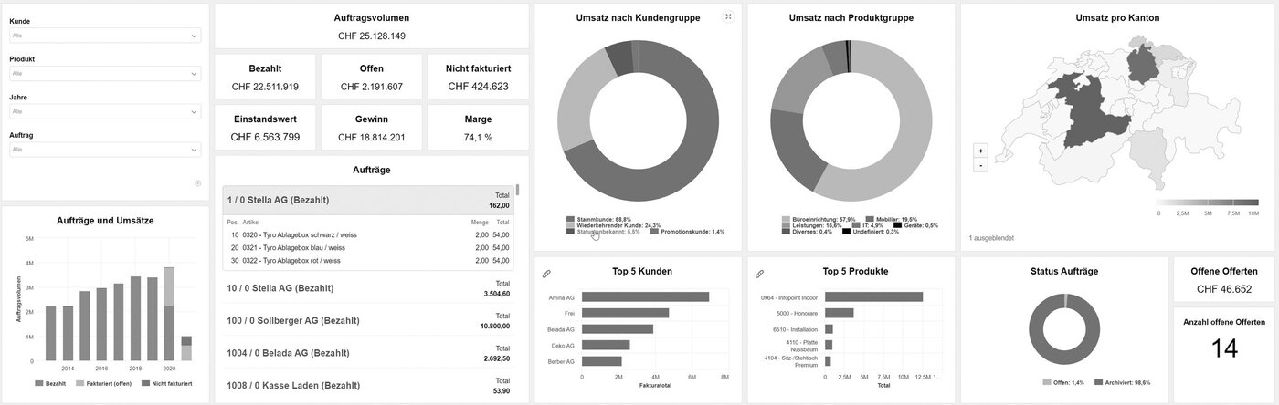 Mit dem Abacus Data Analyzer visualisieren Sie Reports aus den verschiedensten Applikationen und Optionen der Abacus Business Software. Die Daten und Informationen werden in verschiedenen Grafiken dargestellt. So verschaffen Sie sich innert kurzer Zeit einen transparenten Überblick über die für Sie relevanten Daten. Die Daten stehen Ihnen in Echtzeit zur Verfügung und tragen so dazu bei, Grundlagen für strategische Entscheidungen zu schaffen und Sie bei weiteren Führungsaufgaben zu unterstützen.